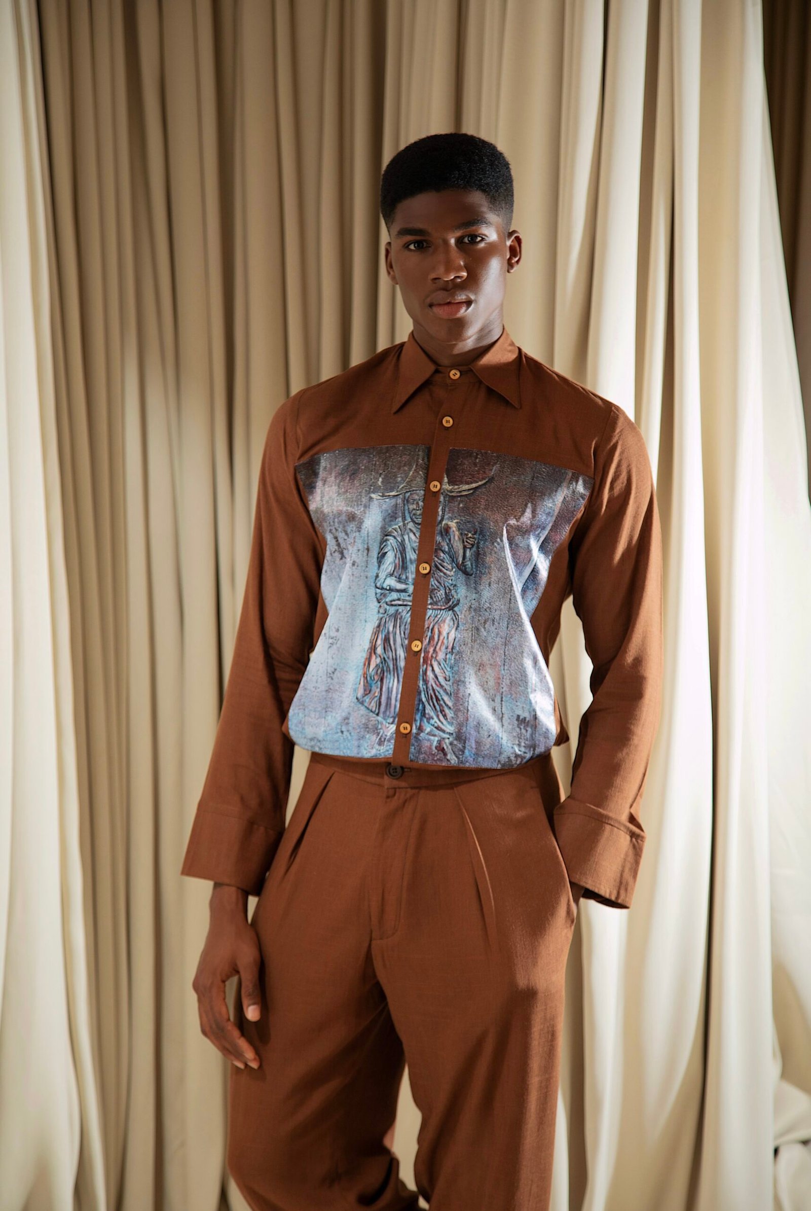 Long Sleeved Tailored Shirt With King Jaja Digital Print Image And Overlap Cuff Detailing