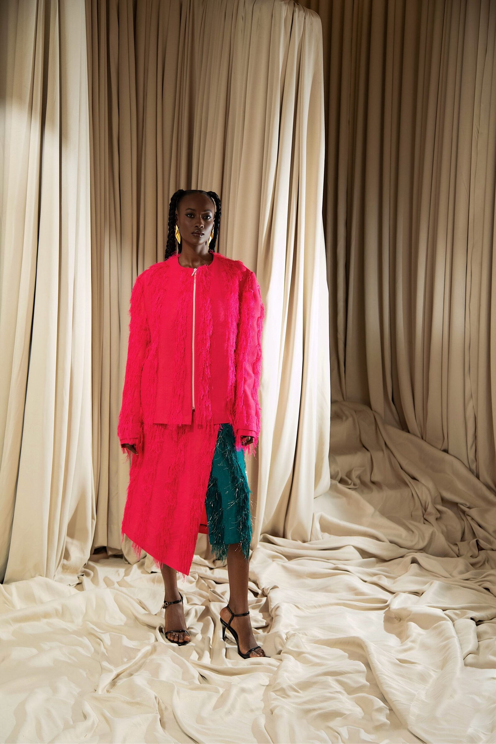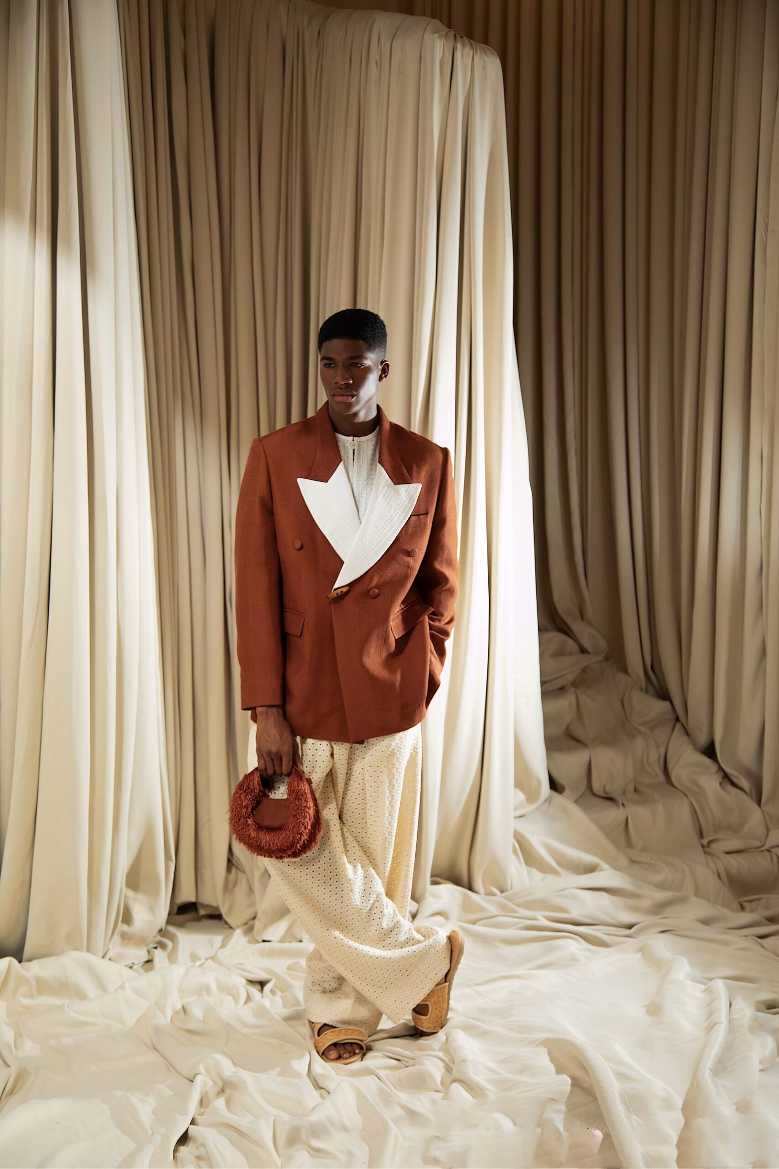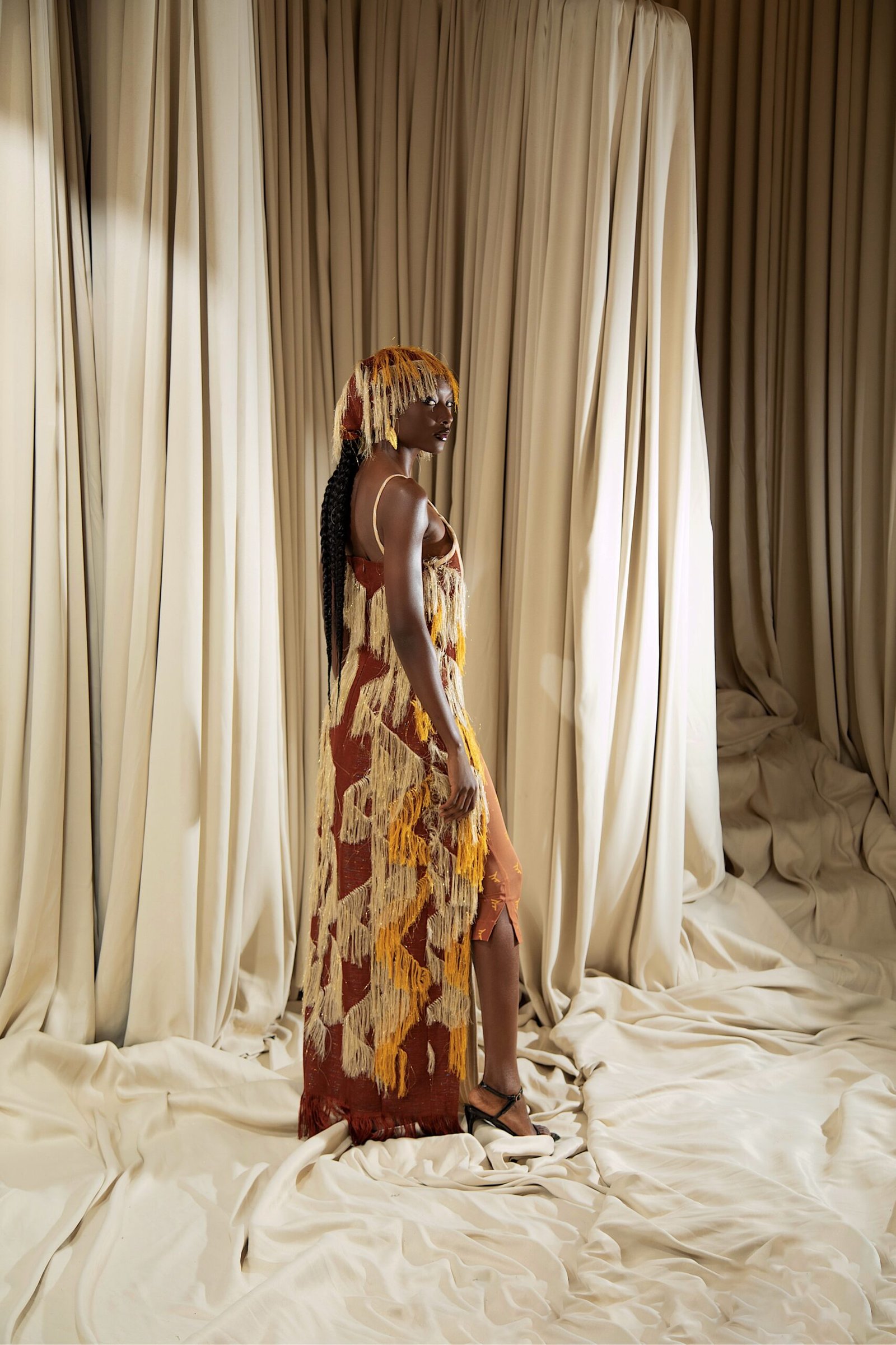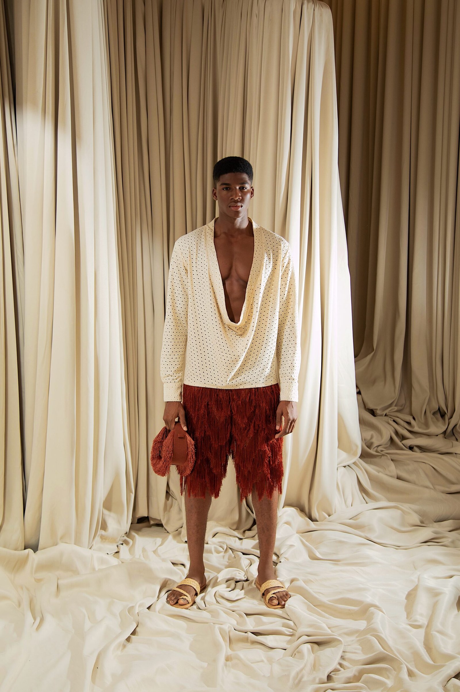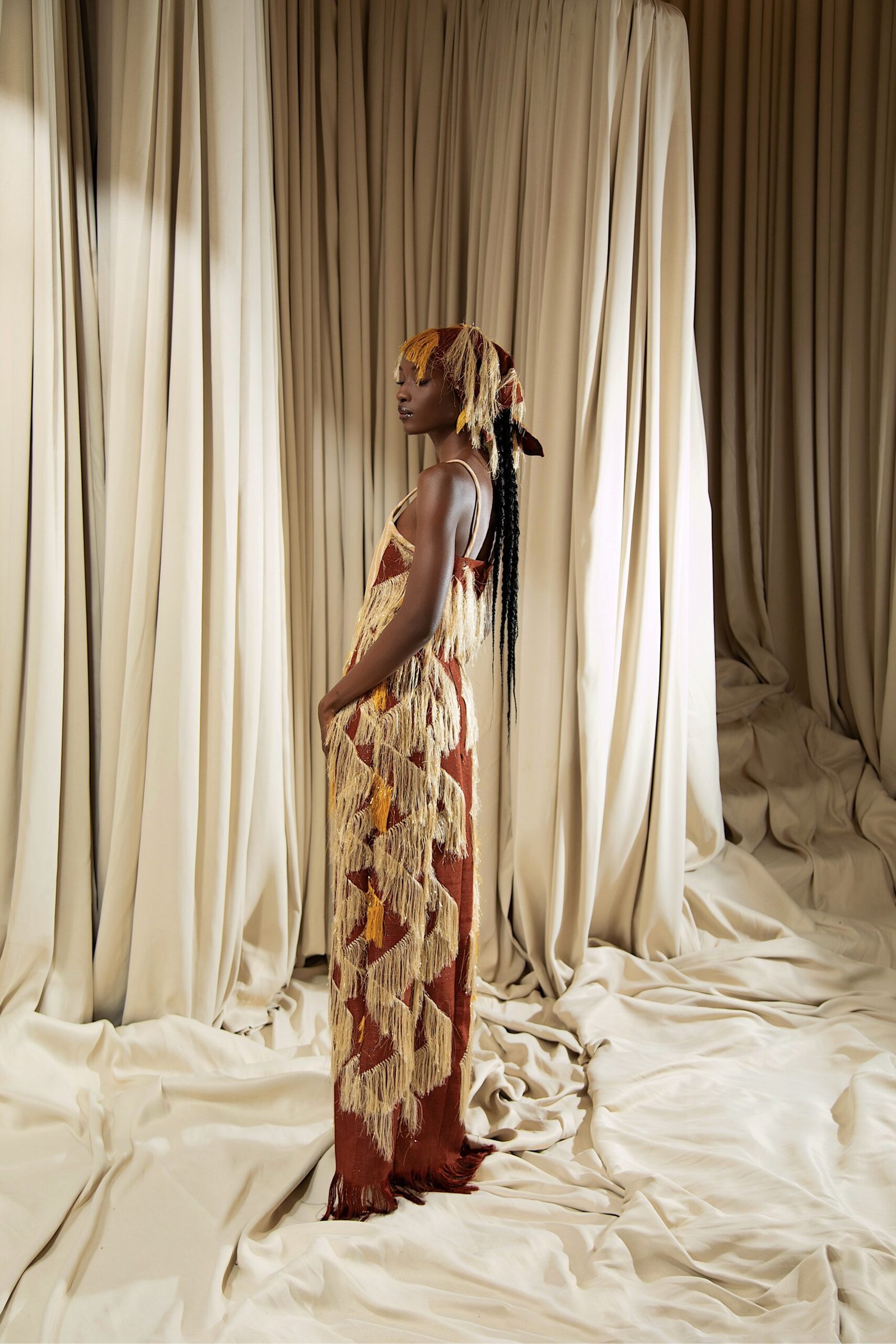At the heart of “REBIRTH” is the brand’s continued commitment to artisanal excellence. The collection employs locally sourced, handwoven Akwete textiles, created in collaboration with our team of skilled women artisans using centuries-old techniques. Sculptural cuts meets regal draping as the collection brings together tradition and futurism. This season, Emmy Kasbit tells the story of becoming – of what it means to leave behind, to rediscover and to rise renewed. A testament to the unbreakable spirit that dares to dream beyond what was, towards what can be.