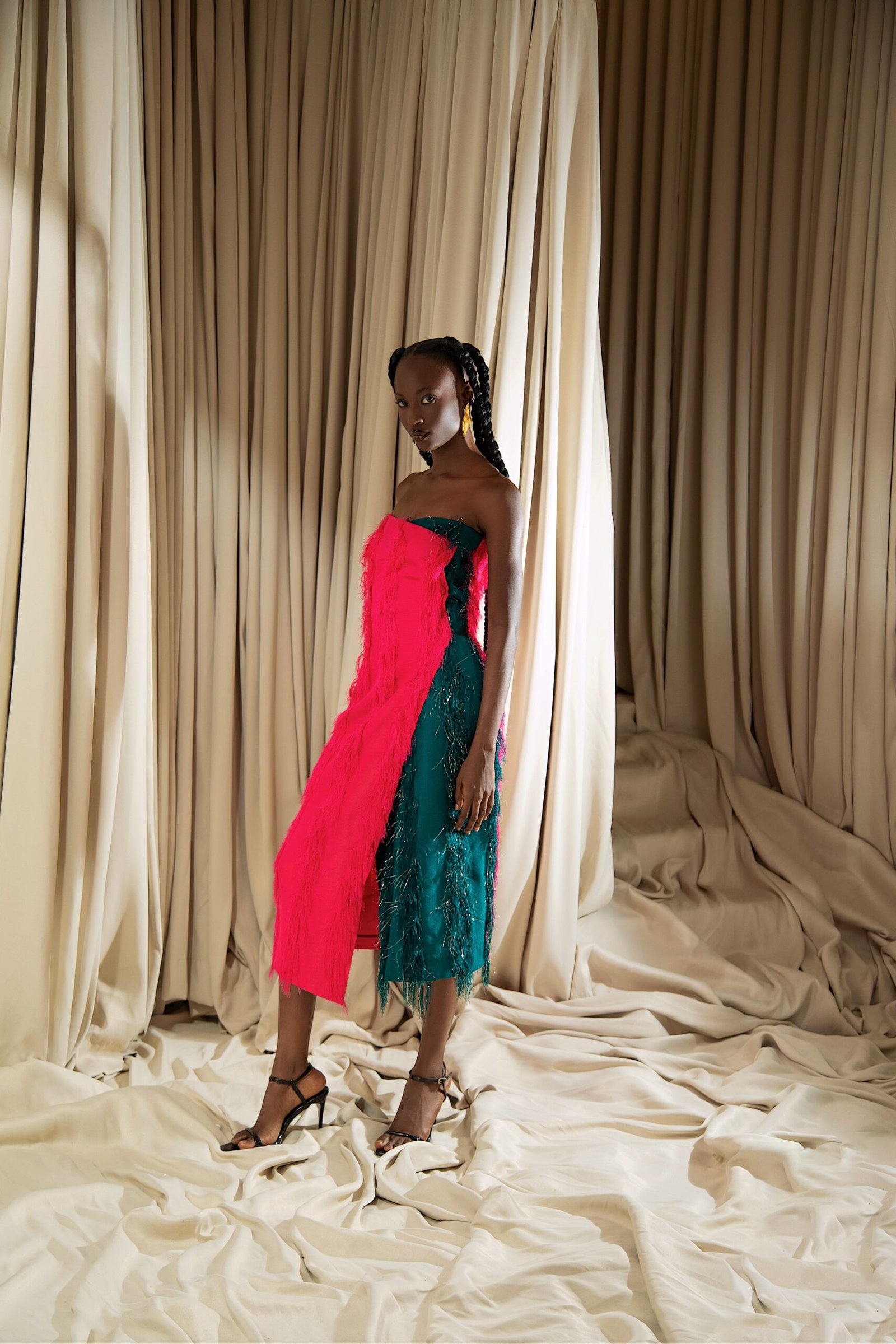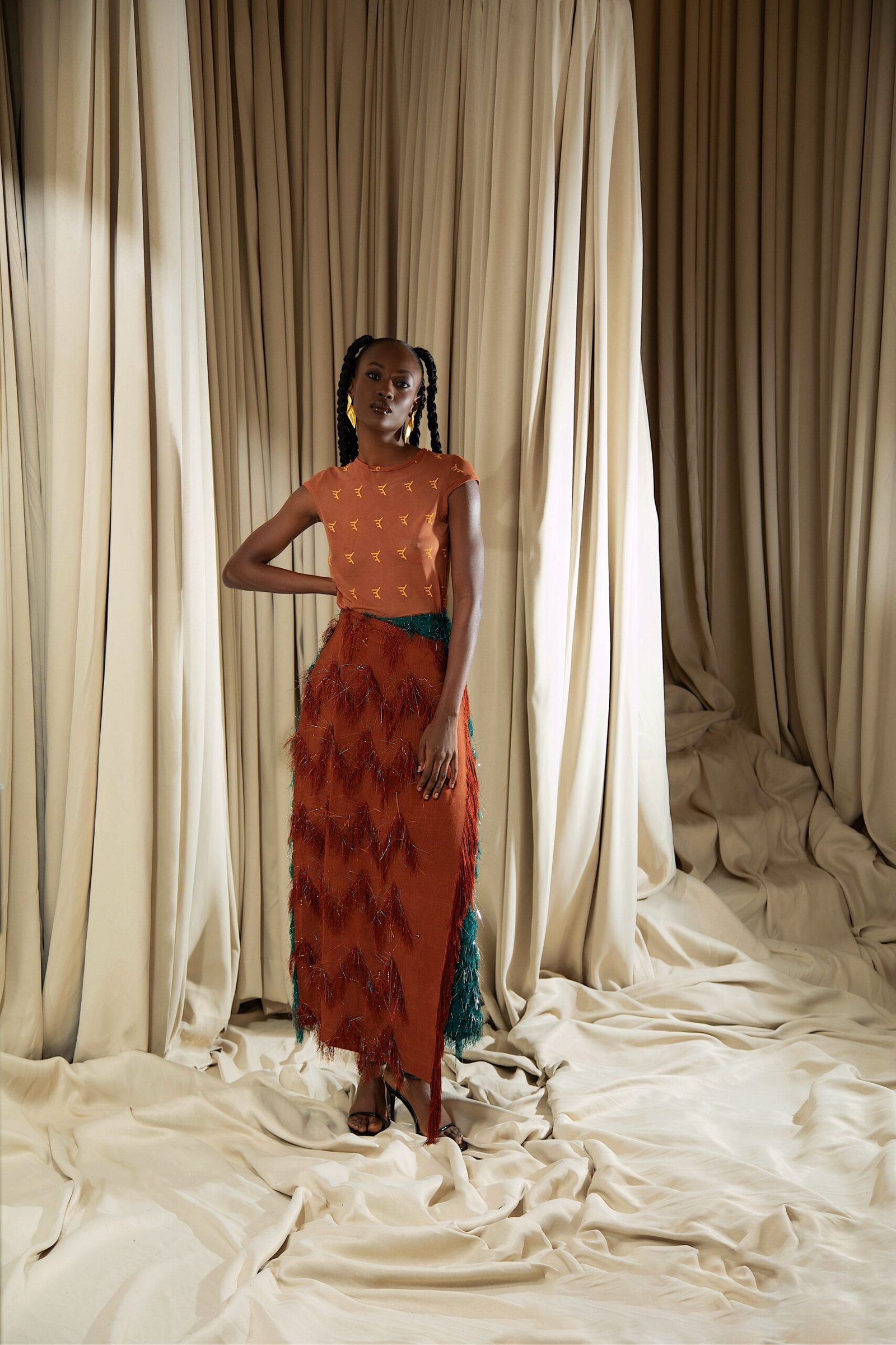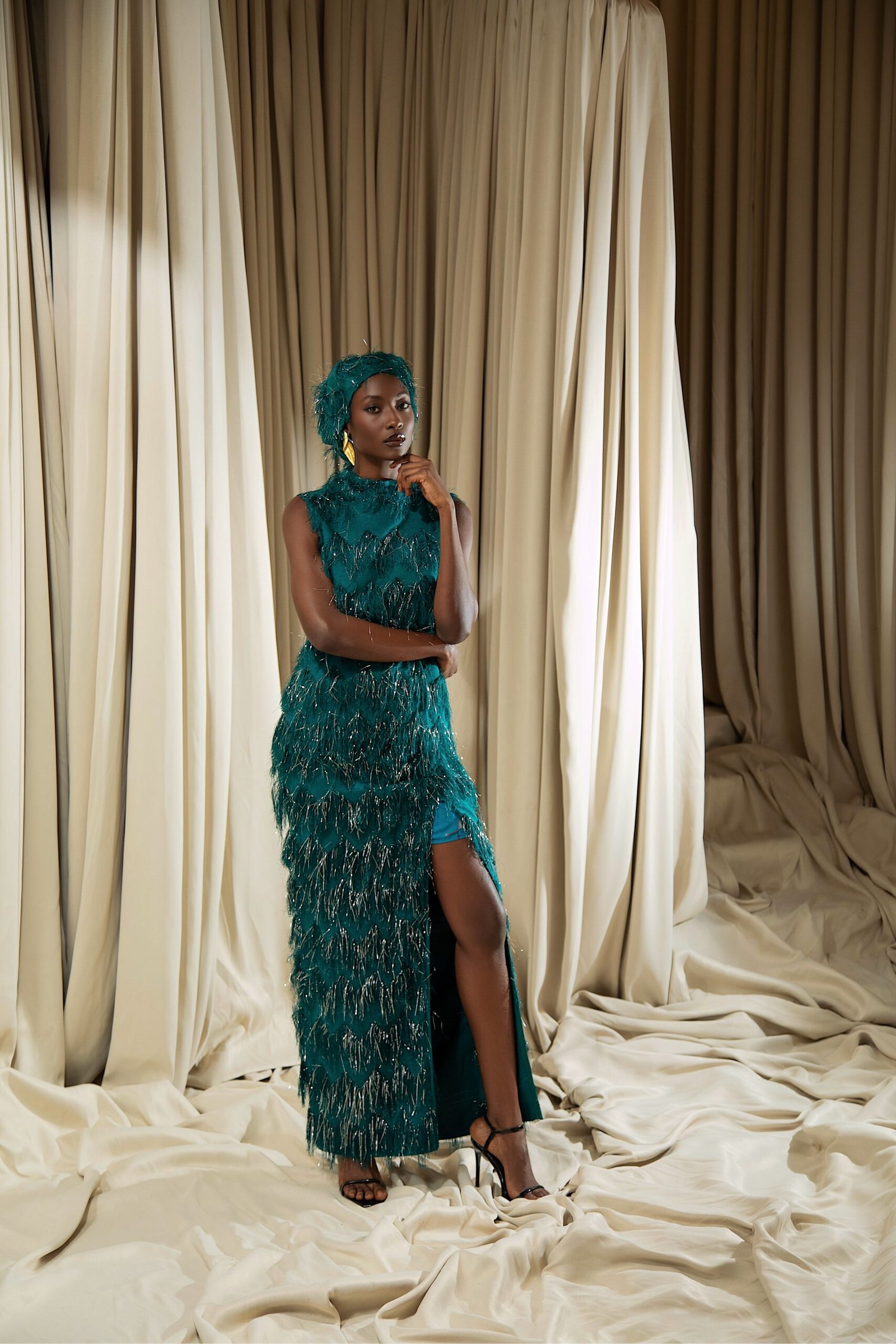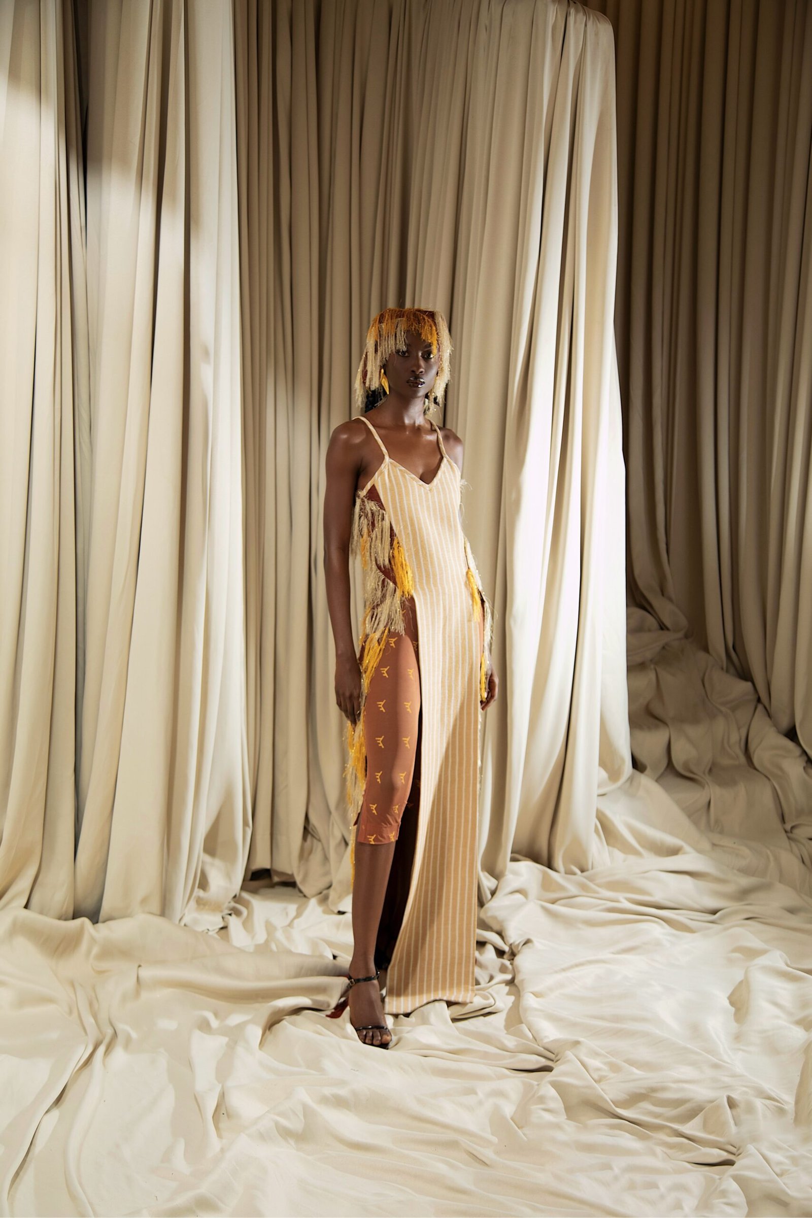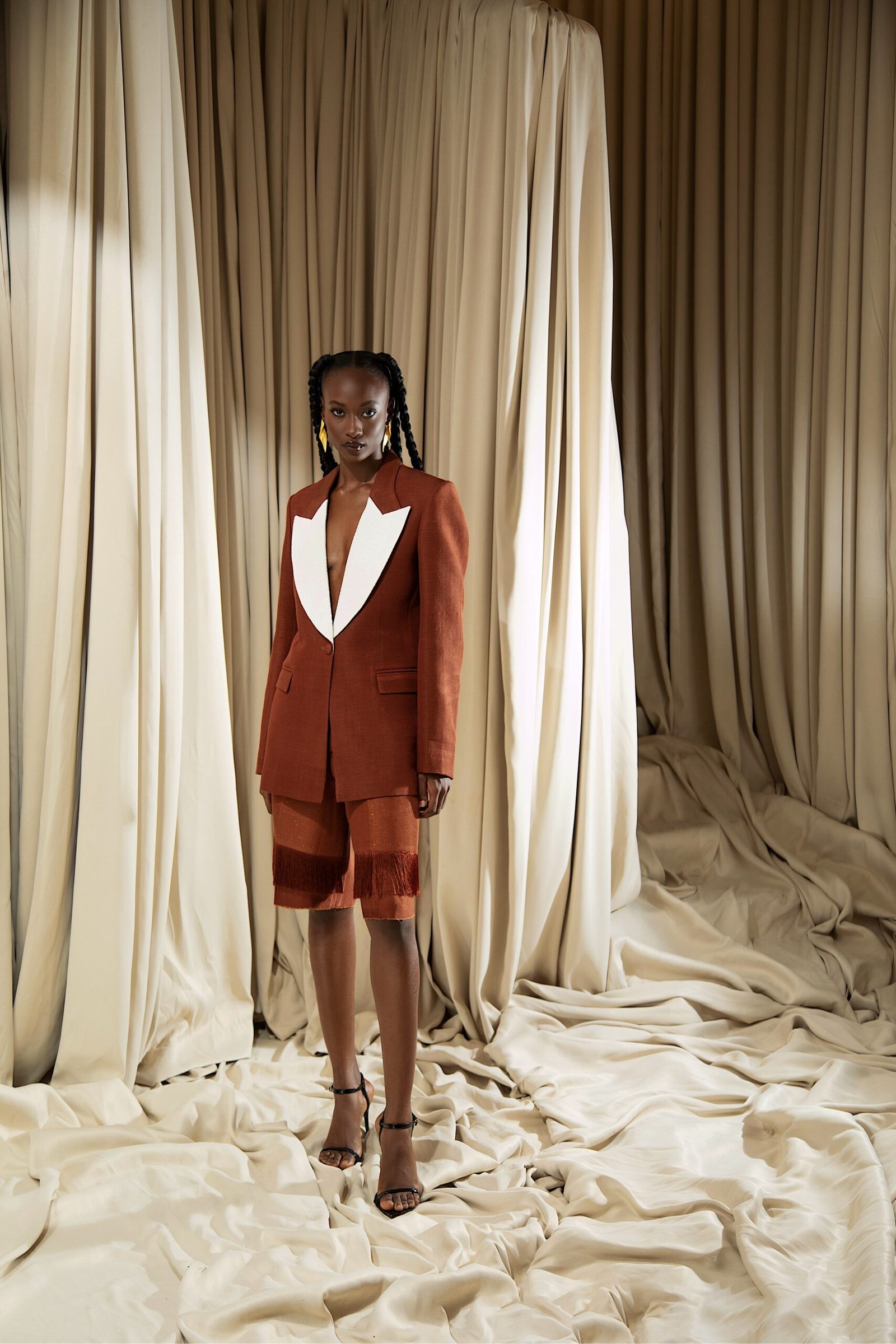 At the heart of “REBIRTH” is the brand’s continued commitment to artisanal excellence. The collection employs locally sourced, handwoven Akwete textiles, created in collaboration with our team of skilled women artisans using centuries-old techniques. Sculptural cuts meets regal draping as the collection brings together tradition and futurism. This season, Emmy Kasbit tells the story of becoming – of what it means to leave behind, to rediscover and to rise renewed. A testament to the unbreakable spirit that dares to dream beyond what was, towards what can be.