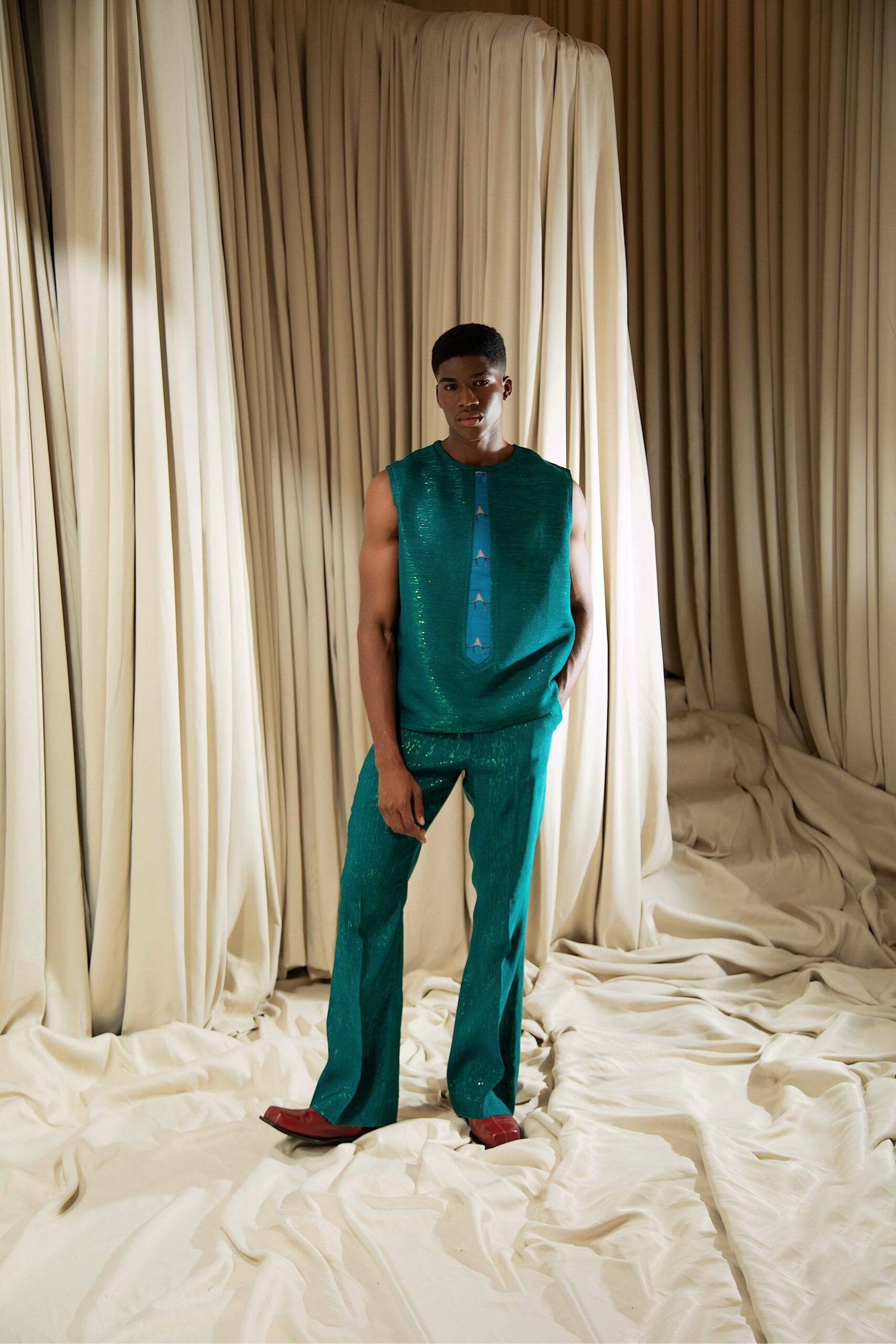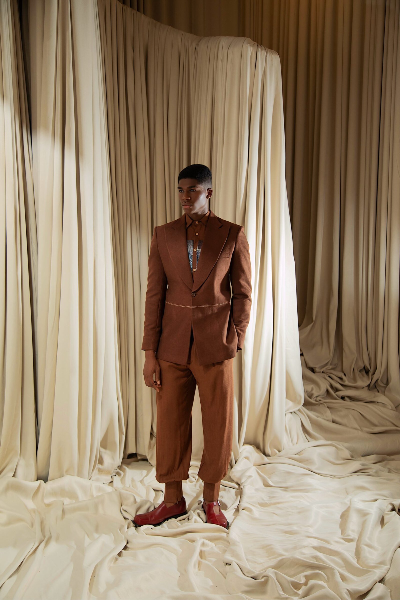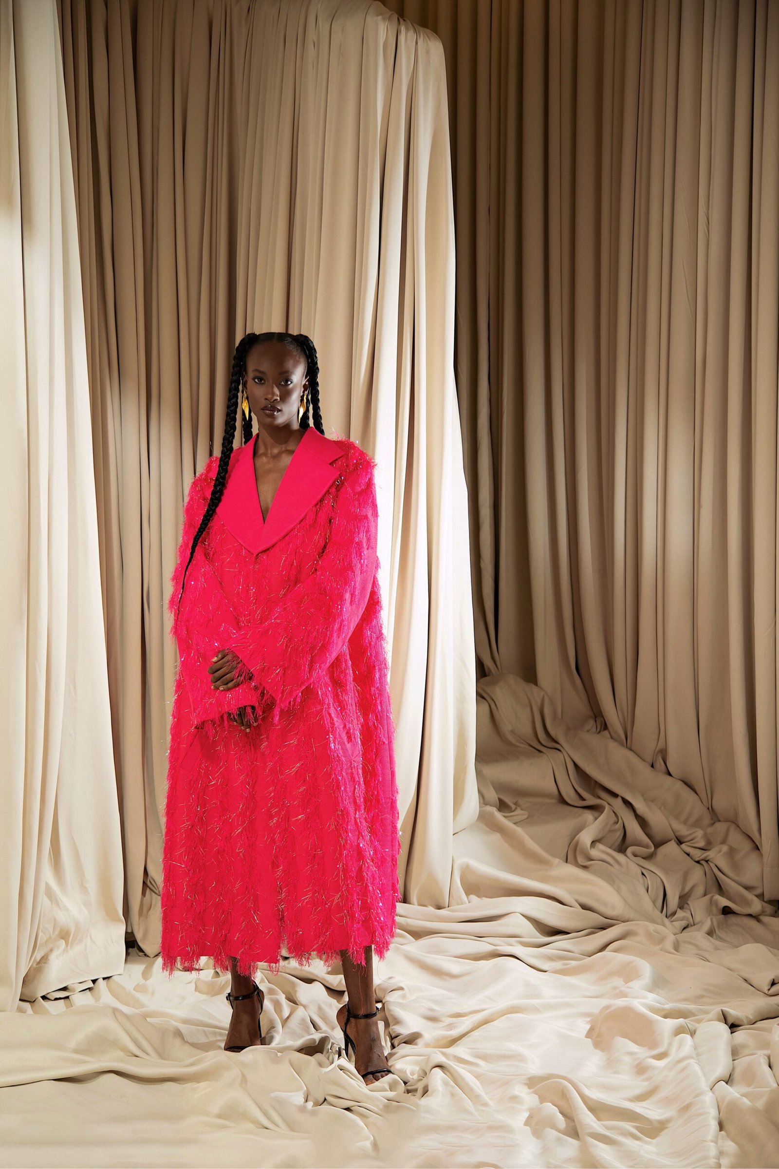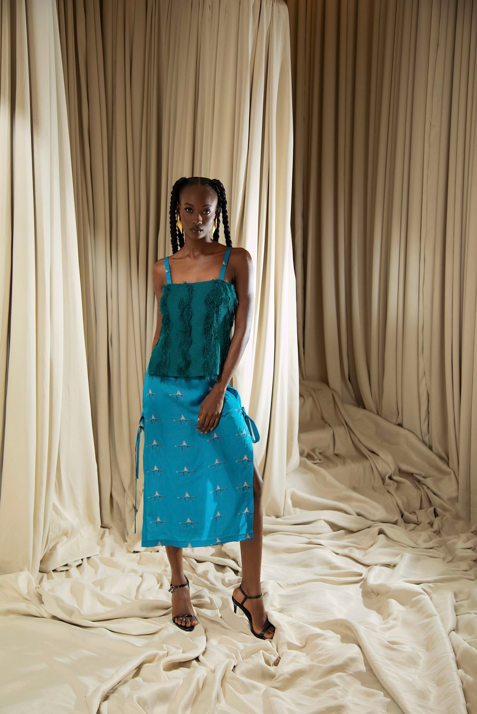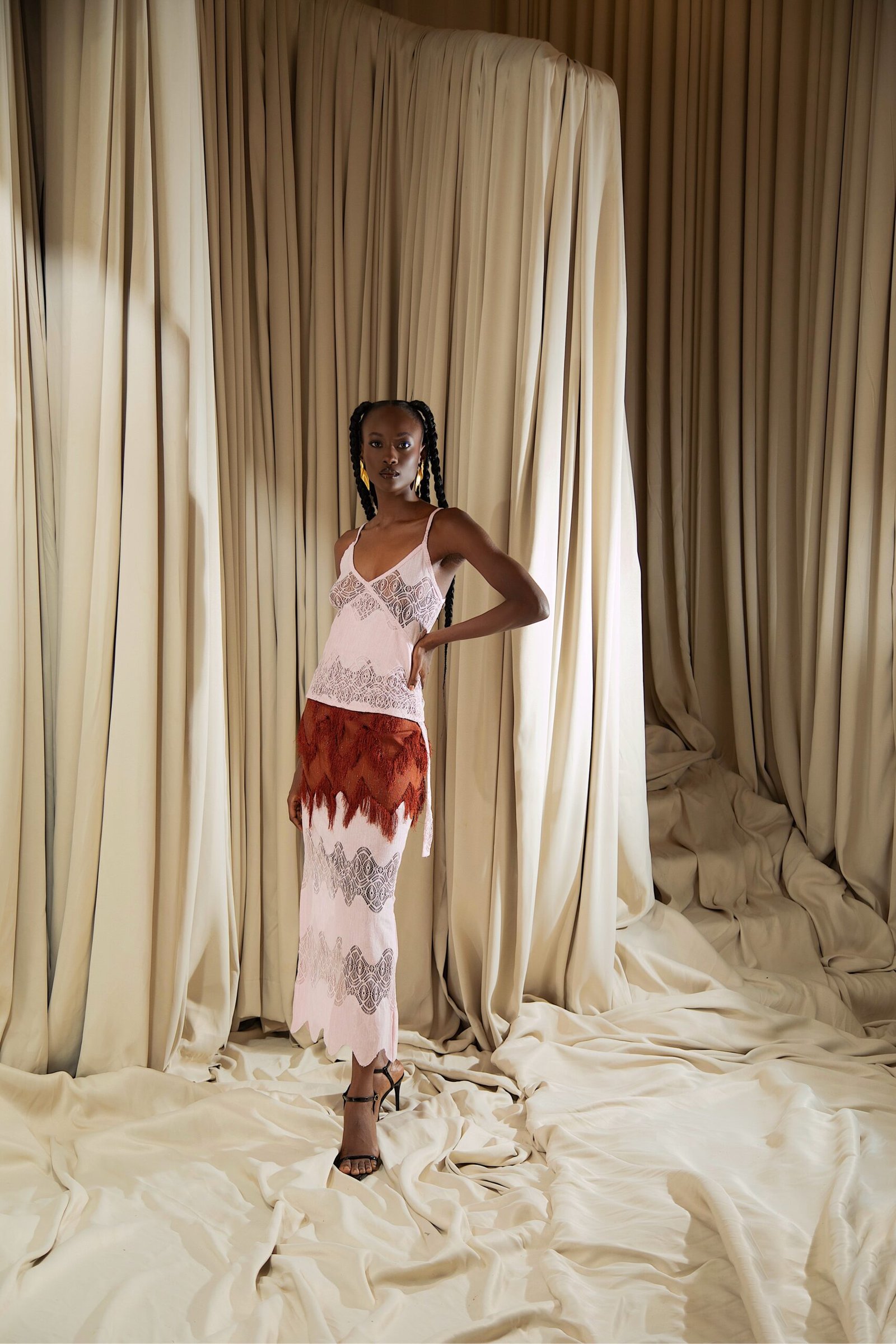 At the heart of “REBIRTH” is the brand’s continued commitment to artisanal excellence. The collection employs locally sourced, handwoven Akwete textiles, created in collaboration with our team of skilled women artisans using centuries-old techniques. Sculptural cuts meets regal draping as the collection brings together tradition and futurism. This season, Emmy Kasbit tells the story of becoming – of what it means to leave behind, to rediscover and to rise renewed. A testament to the unbreakable spirit that dares to dream beyond what was, towards what can be.
